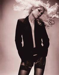 She towers many feet above the ground, an amalgam of leather, studs and stilts. It‘s like rock‘n roll as seen through the lens of Leni Riefenstahl, or maybe Hype Williams (actually, its the work of Oasis/Marilyn Manson videographer Wiz). You‘d say this vision was larger than life, if Harry herself didn‘t seem at least 60 feet tall in person, and about a hundred times more impressive.